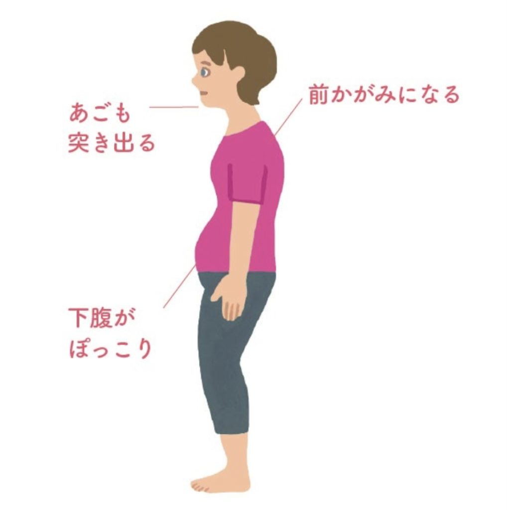 そのため背中はどんどん丸くなり、下腹とあごが突き出た姿勢になっていきます。