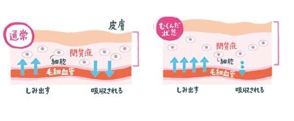むくみとは、細胞の間にある間質に余分な水分がたまっている状態のこと。腸内環境が良好なら余分な体液は腸内に集められて排出されますが、悪化すると水分を集められず、間質の中に停滞。顔やお腹にもむくみが発生します。